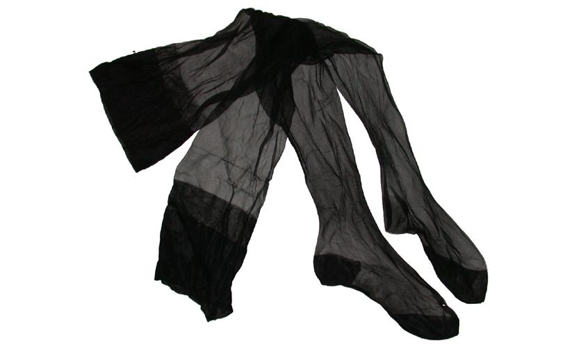 Háir nælonsokkar, par, sem ná upp á mið læri. Á stöku stað hafa þræðir dregist til í þeim en að öðru leiti eru þeir í mjög góðu ástandi. Þeir eru ekki samstæðir en þó mjög líkir. Annar er lengri en hinn og með þykkari hæl. Vafalaust hafa þeir verið notaðir sem par. Þeir hafa væntanlega verið notaðir bæði við peysuföt og upphlut.