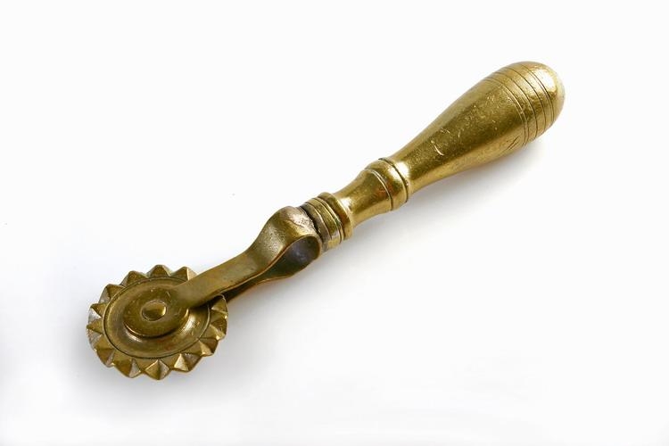 Með venjulegu lagi. Skaftið með útrennslum og á það kveiktar tvær kinnar úr látúni, er ganga fram á hjólið, sem fest er með látúnsnagla. Hjólið með útrennslum og skásorfnum zigzaglaga eggjum.
