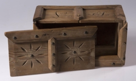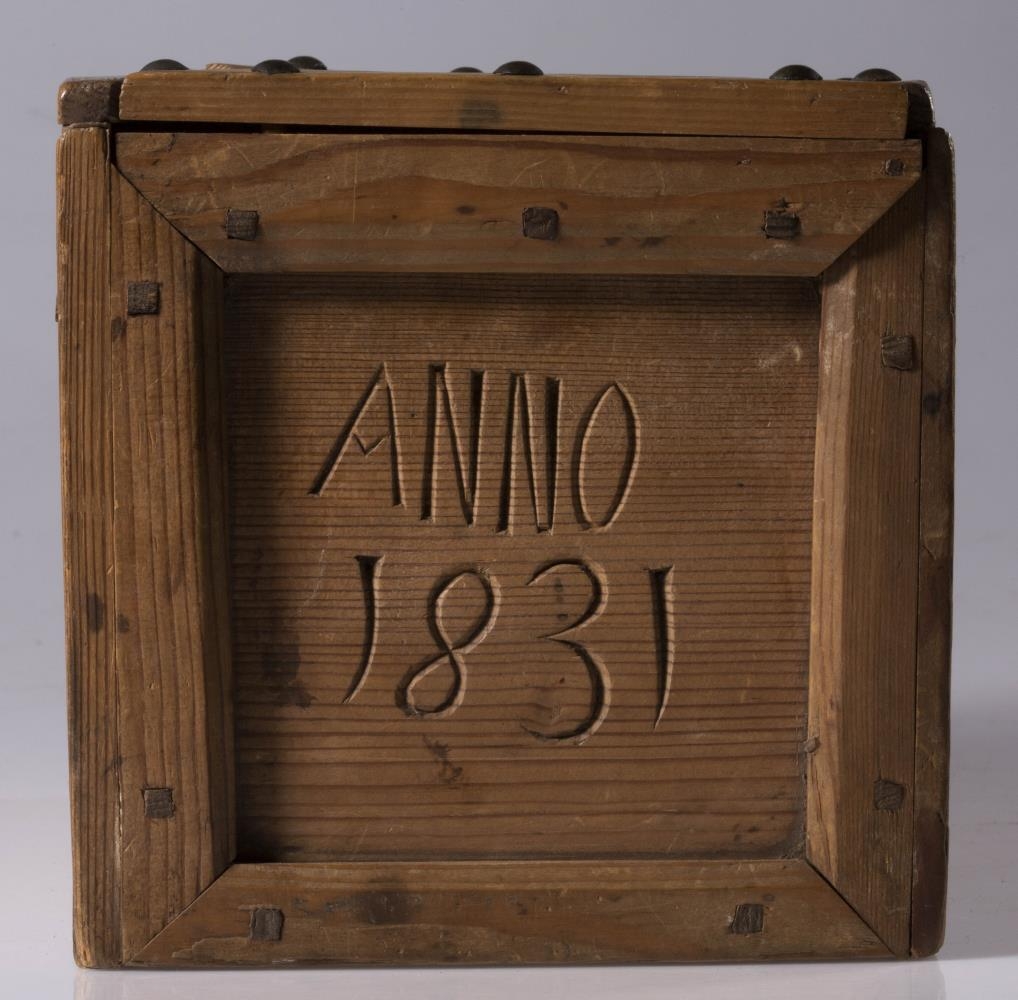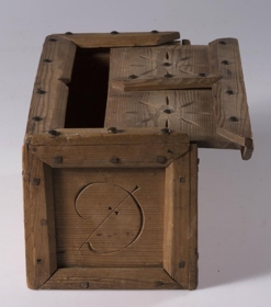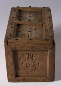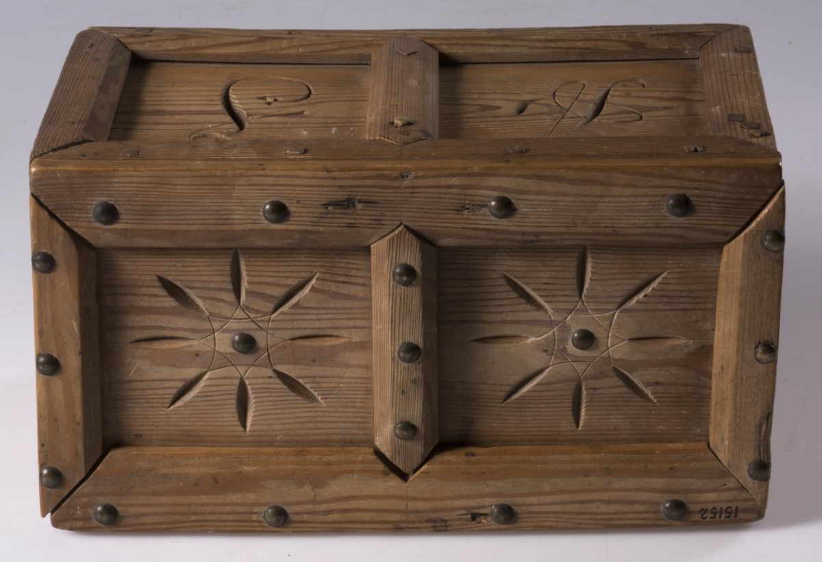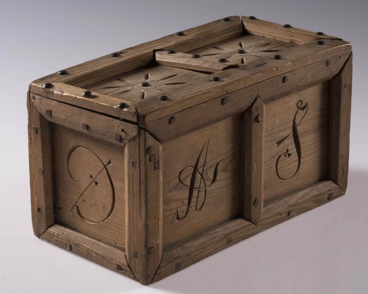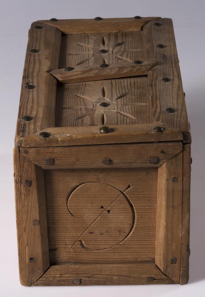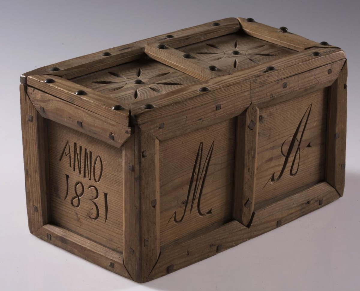 Stokkur, smíðaður af Gissuri Pálssyni, síðar bónda á Syðra-Steinsmýri í Meðallandi. Einfaldur furukassi með renniloki, renndu frá hlið, lagður flötum listum og festur saman með trétöppum. Ofan í trétappana á loki og efri brún hliðanna eru reknar eirbólur. Lengd 28 sm, br. 16 sm, hæð 15.7 sm. Innri brún listanna. Langhliðum og loki skipt í tvennt með þverlista. Á reitum loksins eru útskornar stjörnur, sín í hvorum reit og eirbóla í þeim miðjum. Á reit framhliðar eru ristir stafirnir A og F, skrautlega dregnir upphafsstafir latínuleturs. Á gaflinum til hægri er rist: Anno 1831. Er anno með upphafsstöfum. Á reiti bakhliðar er rist M og A, á vinstra gafl D, með sama letri og er á framhlið. Einn listi að ofan er farinn að losna, að öðru leyti er stokkurinn heill og vel út lítandi. Gissur sá Pálsson, sem smíðaði stokk þennan, gaf hann í tryggðarpant heitkonu sinni Margréti Árnadóttur. Giftust þau 22.10.1835. Stokkurinn gekk síðan að erfðum til Guðbj. Gissurardóttur, sem átti Jóhannes Jónsson, bónda í Geitavík í Borgarfirði eystra, og loks til Margrétar þar, en hún vill ráðstafa honum á forngripasafn, segir í meðfylgjandi greinargerð. Sbr. Þjms. 3235, 6121, o.fl.