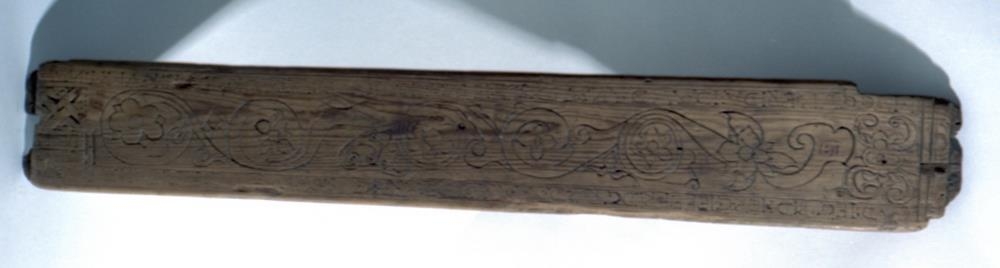 l. 49,5 cm., gr. 15, þ. 1,6 cm.: randir ávalar og hefluð strik meðfram