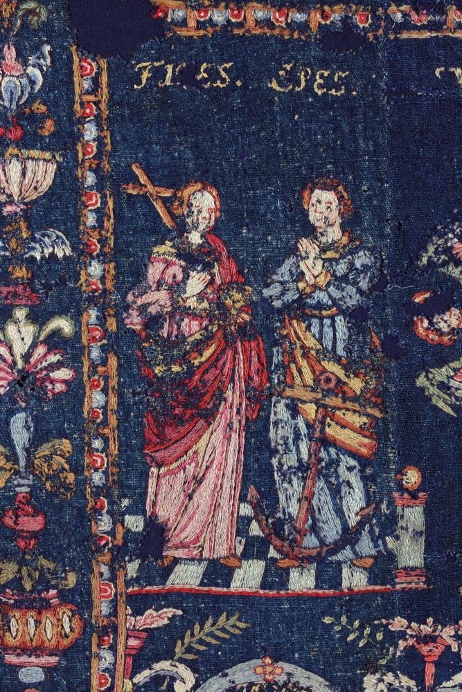 Höfn, en blár dúkur hefur verið saumaður undir það þar nýlega til styrktar