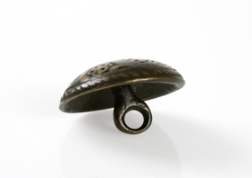 Brókarhaldshnappur úr kopar, grafinn að ofan með perlubandi í þríhyrningi og fimm blaða blómum. Slíkir hnappar voru á strengnum á lokubuxum karlmanna, einn hvorum megin og héldu uppi lokunni. Líklegast frá 17. öld.