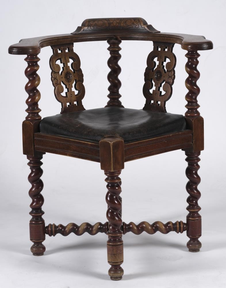 Skrifborðsstóll Guðmundar Magnússonar (Jóns Trausta, f. 1873, d. 1918), skálds og prentara. Stóllinn er 77,2 cm á hæð með bakinu, setan er klædd leðri og 42 cm x 42 cm að stærð. Bakið er í hálfhring, gert úr renndum og gagnskornum pílárum, sem standa lóðrétt, en lárétt slá efst. Fætur eru renndir og renndar skáslár. Þverslár tengja þær saman nálægt gólfi. Stólinn keypti Þorsteinn sýslumaður á uppboði eftir Guðmund Magnússon (Jón Trausta, f. 1873, d. 1918), skáld og prentara.