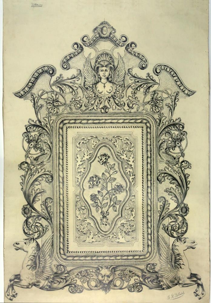 Uppdráttur eftir Gunnlaug P. Blöndal af framhlið skáps, er hann skar út sem sveinsstykki 1913, í endurlifnunarstíl. Stærð blaðsins er 112,3 x 72,7 cm. 1) Teikningin er nú með listiðnaðarsafninu, en aðeins tölusett hér. (Ad. 49 í listiðnaðarsafni). 1) Skáp þennan gáfu synir Andrésar Fjeldsteð, er var á Hvítárvöllum, honum á gullbrúðkaupsdegi hans, en að sögn Stefáns mælti Andrés svo fyrir, að skápurinn skyldi ganga til Þjóðmenjasafnsins eftir sinn dag.