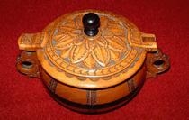 asksins og að botni.Útskorin handföng. Lokið er allt fagurlega útskorið