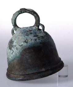 A small church bell or chancel bell in the Romanesque style, with a loop at the top. The bell´s clapper is missing. The bell was unearthed at Narfastaðir in the summer of 1995. This was the site of a chapel.