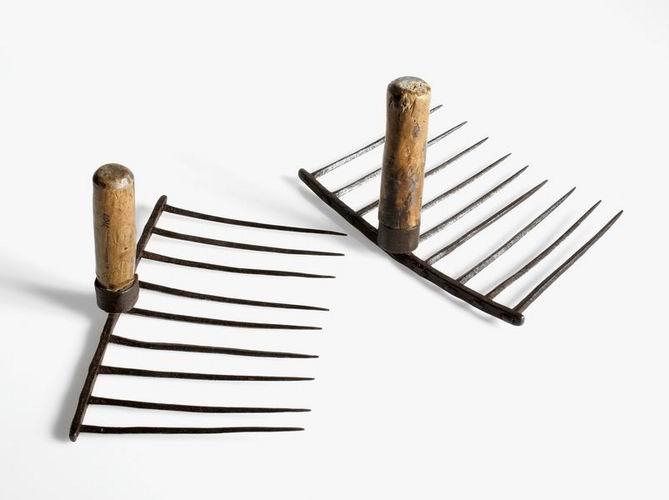 það sem liggur utanum þá. Hinn kamburinn er nú tekinn í hægri hendi, tindarnir
