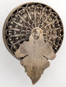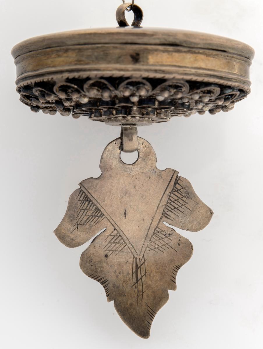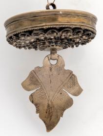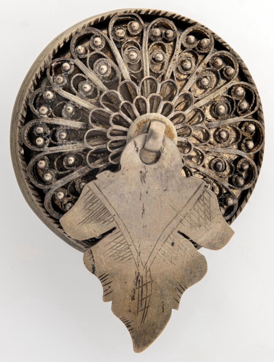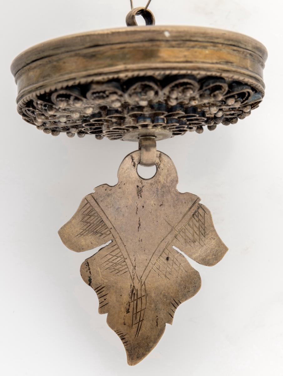 Þyngd 34 gr. Samfelluhnappurinn er með víravirkisskreytingu og niður úr honum miðjum hangir laufblað lítillega útskorið. Þegar hér var komið sögu hafði samfelluhnappurinn glatað tilgangi sínum og var einvörðungu til skrauts.