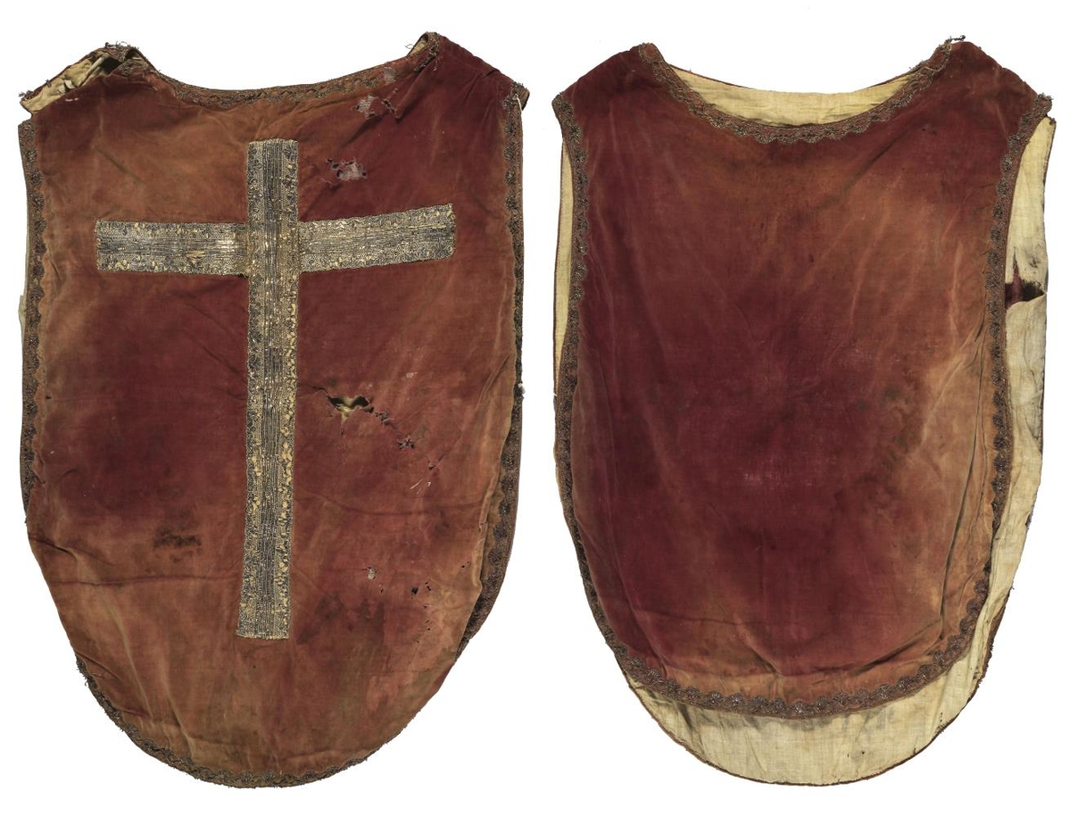 Hökull úr Auðkúlukirkju. Hann er úr flaueli rauðbrúnn að lit með gylltum krossi á baki og með brúnum er borði úr gylltum vír. Kræktur á vinstri öxl. Flauel er allilla farið. Hökull þessi er heitgjöf til Auðkúlukirkju frá Jóni nokkrum Jónssyni bónda á Snæringsstöðum í Svínadal, er kallaður var hadú, og er saga sú prentuð (sjá: Kirkjur Íslands, 8. bindi)