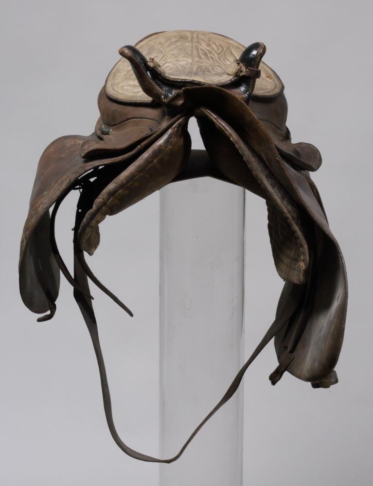 Söðull af nýlegri gerð, sveifarlaus. Setan er 45 sm á lengd, mest br. hennar 33 sm, en minnsta breidd 15 sm, þ.e. um hausinn. Klakkarnir eru tveir, 8 sm á hæð, 7.5 sm á br. neðst. Setan er klædd dökkbrúnu leðri, ofan á henni er laus sessa úr mjúku, gráleitu skinni, prýdd upphleyptum blaðskrautsatriðum, neðra borð hennar er fóðrað með bómullarefni, á brúnum er leðurbrydding. Sessunni er fest með leðurlykkjum við klakkana og reiðakenginn. Dýnan er klædd leðri að ofan, en seguldúk að neðan, troðin út með búkhári. Tvö móttök eru sitt hvorum megin á söðlinum, gjörð er spennt milli fremri móttakanna. Hún er all breið, 5 sm að jafnaði, en fremur þunn. Söðullöfin eru úr þykku leðri, vinstra (fremra) lafið er breiðast um 35 sm, frambrún þess er skreytt breiðum leðurborða, ásaumuðum og með upphleyptum skrautblómum. Vinstra megin á söðlinum er eitt ístað, sem hangir í leðuról, og henni fest við virkið undir setunni. Þar sem ólin kemur fram undan setunni er yfir henni tungumynduð leðurhlíf: er henni fest meðfram endilangri setunni vinstra megin. Ístaðið er úr kopar, hæð 12 sm, br. 10.5 sm, ístaðsboginn talsvert undinn. Sólinn er koparplata, 0.9 sm á þykkt, og leikur hann á sigurnöglum á ístaðsboganum, hæð 8.2 sm, br. 4.6 sm. Reiðinn er af venjulegri gerð. Söðul þennan átti móðir gefanda, frú Jóhanna Jórunn Stefánsdóttir, Siglufirði (f. 1867, d. 1944).