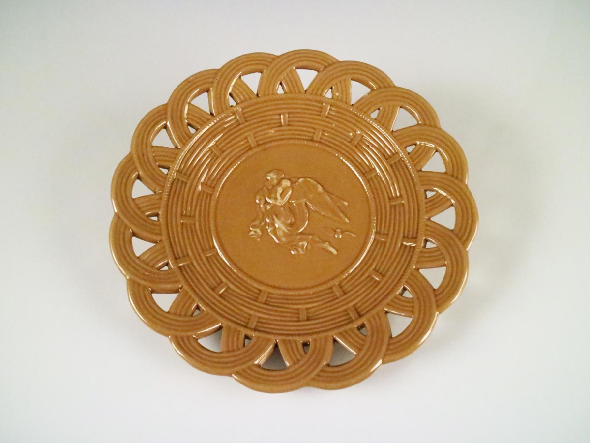 Leirdiskur, brúnn, með mynd: "Nóttin" eftir Bertel Thorvaldsen.