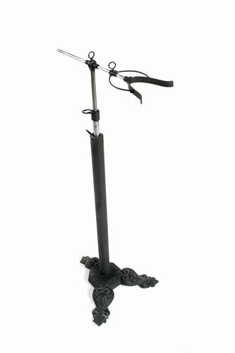 ofan í undirstöðu með þremur útskornum fótum. Efst er fest statífi fyrir