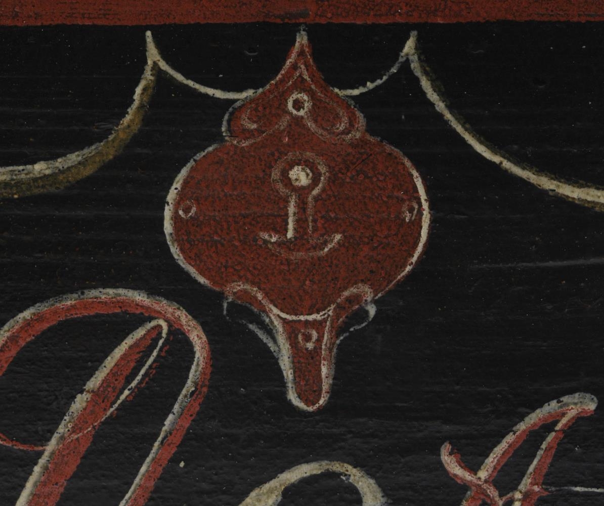 Málaður kistill eftir Jón Hallgrímsson í Kasthvammi. Á framhliðinni er máluð mynd af konu og karli sem kyssast (einungis höfuð þeirra sjást) og er konan búin krókfaldi en karlinn er berhöfðaður. Á framhliðina eru auk þess málaðir stafirnir I I D sem eru upphafsstafir konunnar sem fyrst hefur átt kistilinn (I... J...dóttir) en óþekkt er hver hún var. Á framhliðina er ennfremur málað Ao 1796. Á hliðum kistilsins eru myndir af fuglum og trjám og á lokinu myndir af blómum. Grunnur kistilsins er málaður svartur, en í myndir eru notaðir ýmsir litir, mest rauður og hvítur litur / ljósir litir. Virkilega fallegur og skemmtilegur gripur. Safnið keypti kistilinn af Sigríði Björnsdóttur frá Miklabæ. Móðir Sigríðar hafði keypt kistilinn á uppboði eftir gamla konu á Víðivöllum.
