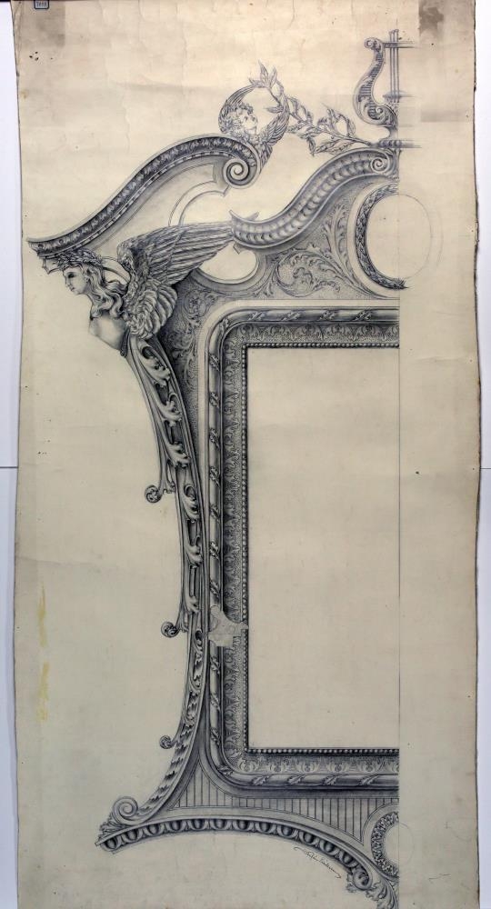 Uppdráttur af myndarumgjörð, er Stefán Eiríksson hefur dregið upp og skorið út, utanum málverk af Alþingishúsinu, eftir Þórarinn B. Þorláksson, gjöf til Hannesar Hafsteins. Uppdrátturinn sýnir helming umgjörðarinnar: er í endurlifunarstíl, ágætt verk. Blaðið er að lengd 147 og br. 71 cm.