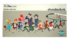 útgefin af Loftleiðum. Stundaskráin er merkt gefanda, Vigdísi Pálsdóttur,