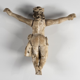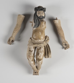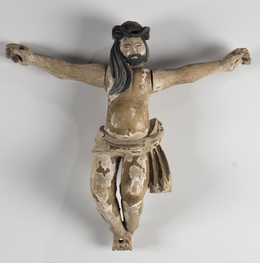 Róða af róðukrossi. Hún er skorin í eik og er öll úr einu tré, nema handleggir, þeir sérsmíðaðir, og festir í með töppum. Lengd (hæð) 32.5 sm, faðmurinn 3.6 sm. Myndin er skorin í barokkstíl. Mikil sveigja er í kropp og limum, bolurinn mjóstur neðan við brjóstið, höfuðið fremur smátt. Það hallast fram og til hægri. Hárið er mikið og liðað. Húðin er með grágulum lit, en hár, skegg og þyrnikóróna með blásvörtum, varirnar rauðar, og blóðið í síðusárunum með sama rauða litnum. Lendarklæðið er samlitt húðinni. Alls staðar sést hvít skán á viðnum, þar sem málningin hefur flagnað af. Lítið er eftir af málningu aftan á róðunni, og mikið hefur flagnað af á fótleggjum, handleggjum og á klæðinu. Nagla vantar á fótum og vinstri hendi. Handleggirnir eru nú lausir. Róða þessi er fremur vel skorin. Hún er sérkennileg, og ekki gott að skipa henni í flokk með öðrum róðum á safninu.