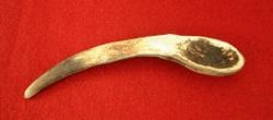 Spónn gerður úr horni. Hann er ófullgerður og hefur aldrei verið notaður.