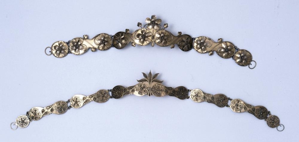 „Eftir að skautbúningurinn kom fram um miðja 19. öld minnkaði silfurstássið. Þó komu þá til ennisspangir eða koffur sem nýtt skraut, og voru þá ýmist heilar spangir eða gerðar úr mörgum liðum sem hlekkjaðir voru saman.“
