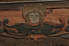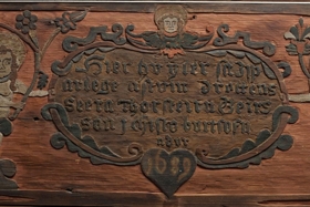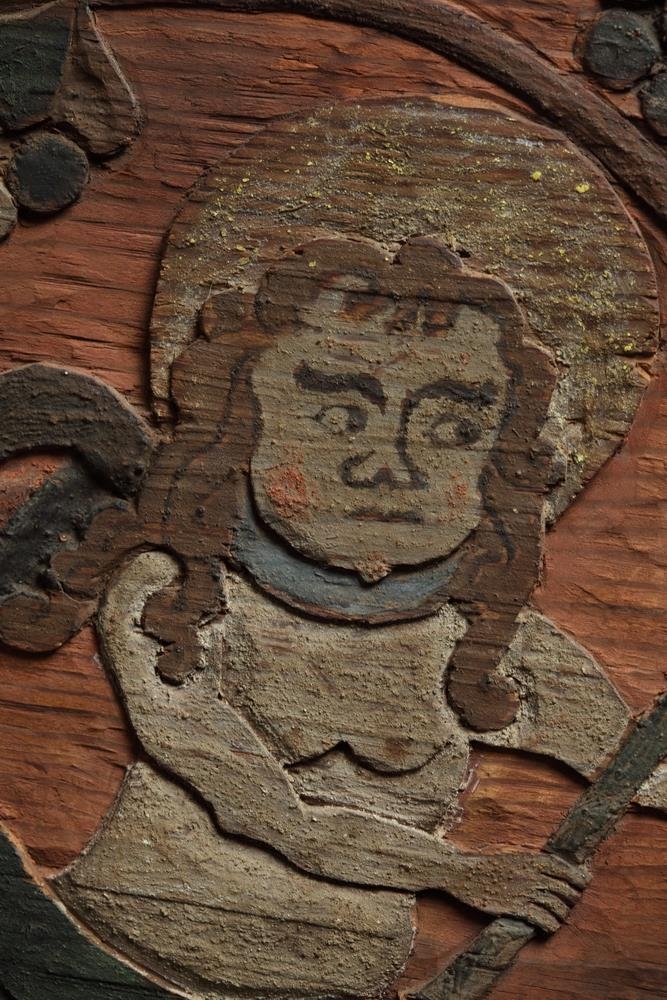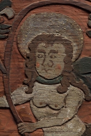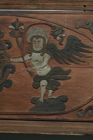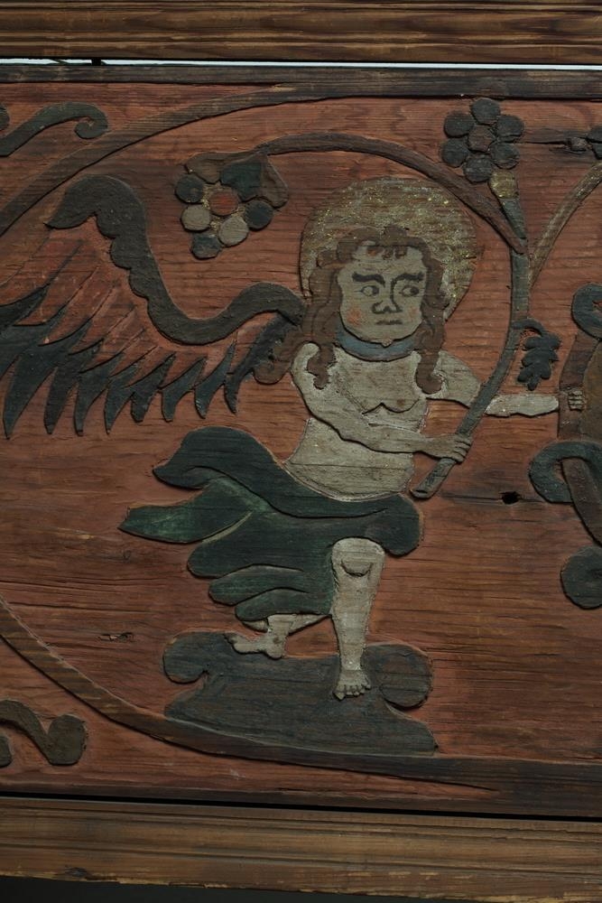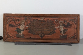 Grafletursspjald, skorið úr furutré, úr sömu (Laufás) kirkju. Það er ferhyrnt í laginu, en lángt og mjótt með strikaðri umgjörð allt í kring. Á það er skorinn sporbaugur, og þar innan í tveir englar, sem halda blómgrein í annari hendinni, en með hinni halda þeir grafleturstöflu sporöskjulagaðri, sem ritað er á með gotnesku letri: HIER HVYLER SA IPPARLEGE ASTVIN DROTTENS SEERA THORSTEIRN GEIRSON I I'CHISTO BURTSOFNADVR 1689.