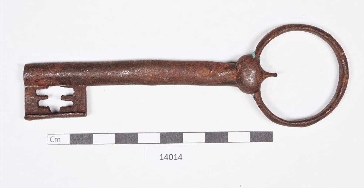 að sögn gamall kirkjulykill, 13,7 cm að l., haldan kringlótt, 4,5 að