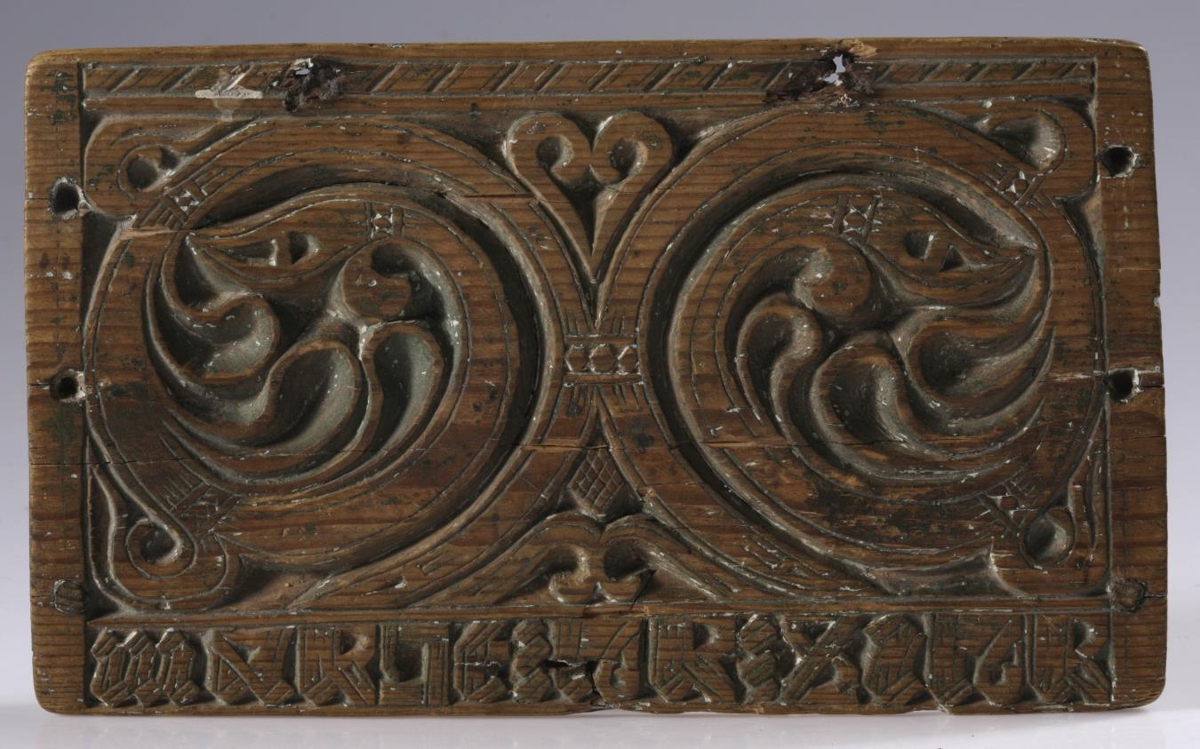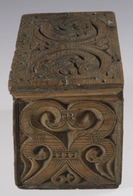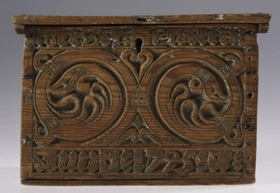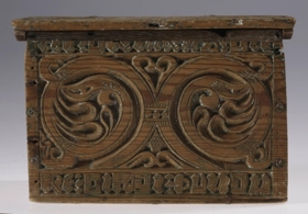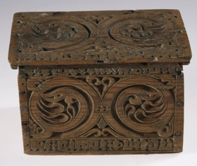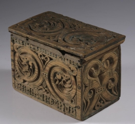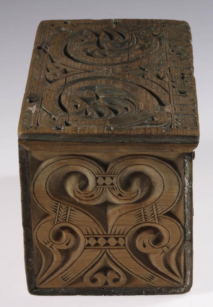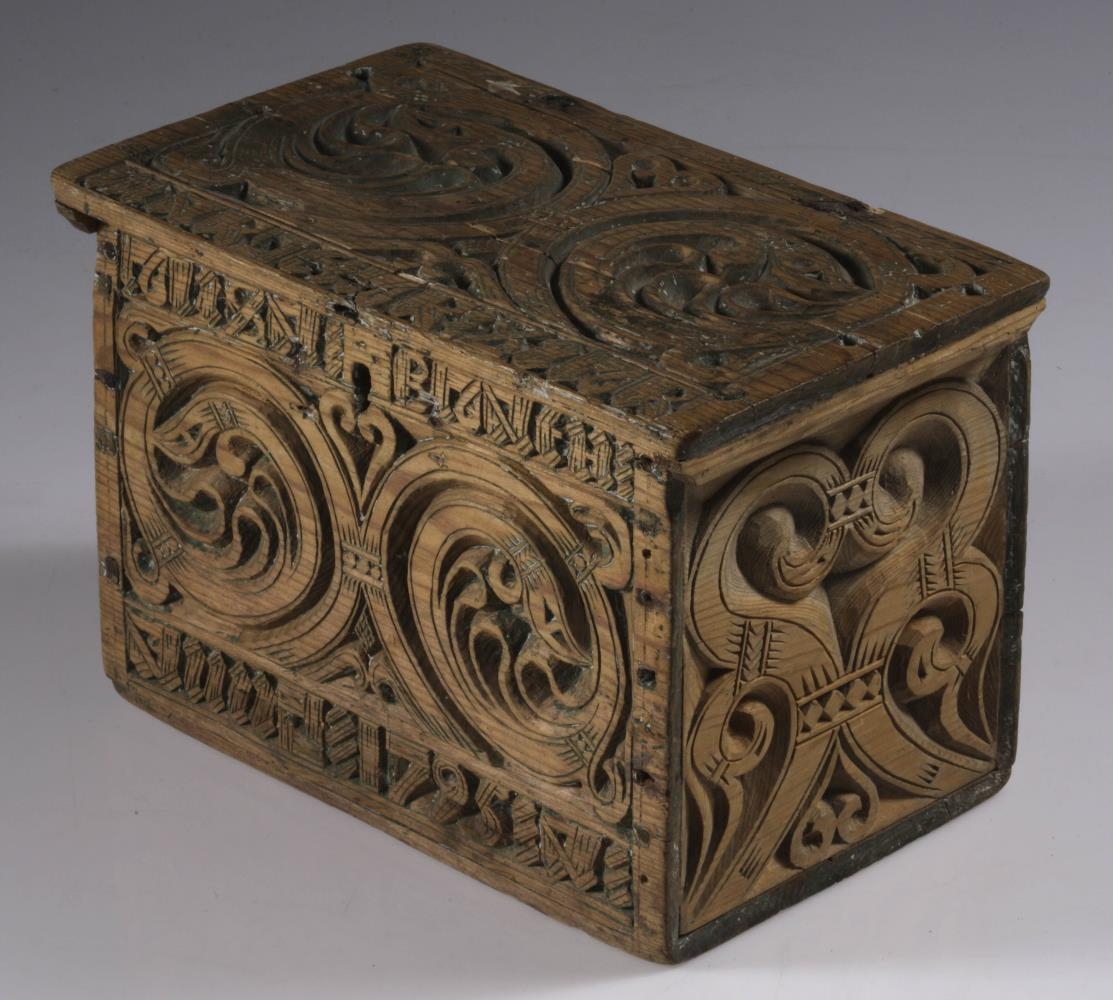 setningunni TIL GAMANS GERT GEÐI ÞUNGA er á langhliðum kistilsins. Lokið