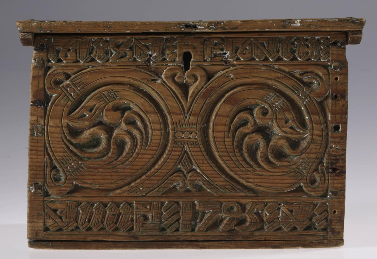 úr Dýrafirði. ANNO 1795 er skorið í hann neðst við botn. Í kistilinn vantaði
