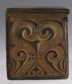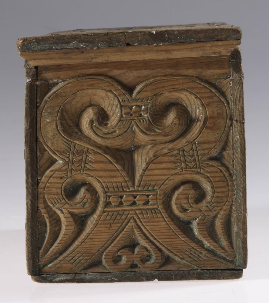 og neðan. Kistillinn er negldur með trénöglum. Hann hefur verið málaður