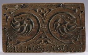 hann skreyttur með hringamunstri og er kantur með höfðaletri fyrir ofan