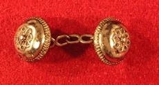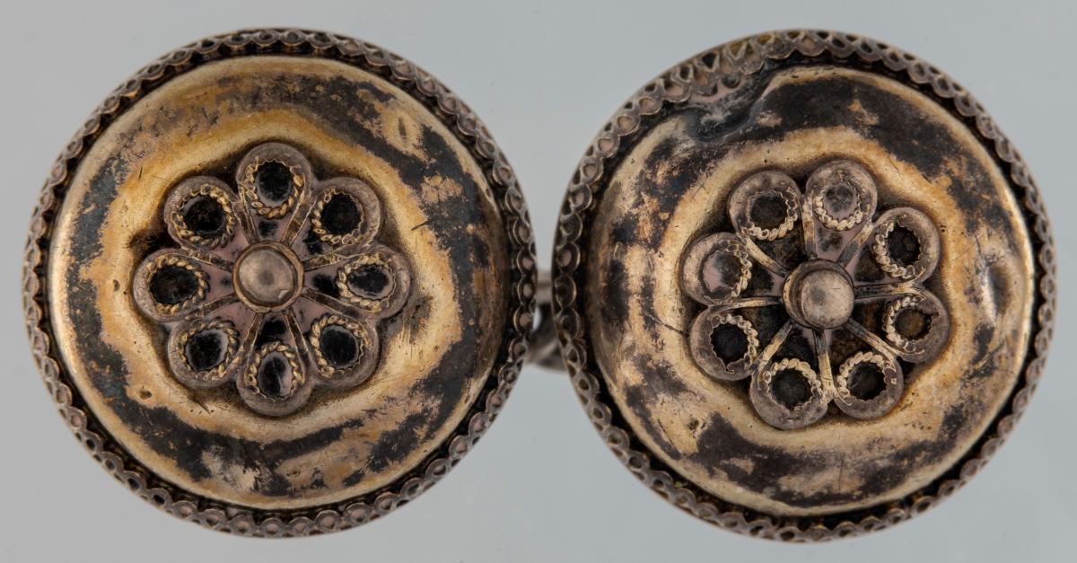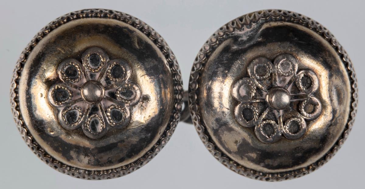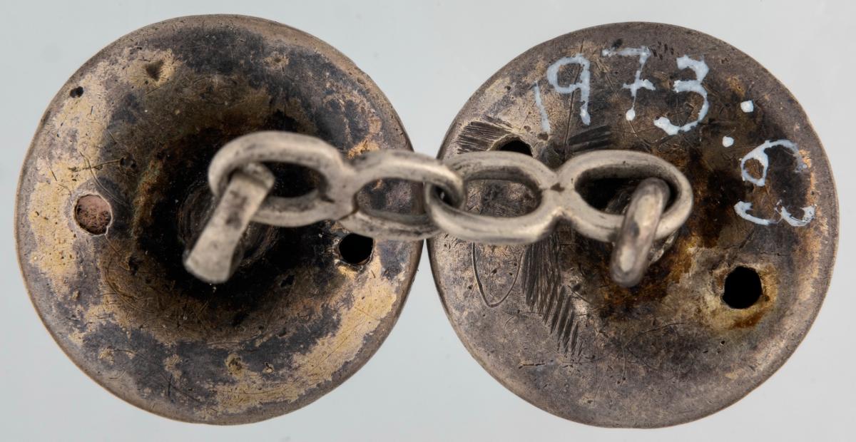 Hempuhnappar Ásgríms Vigfússonar Hellnaprests. Útskornir og skreyttir silfurhnappar fastir saman á keðju sem Gunnar Hjaltason smíðaði. Hnapparnir voru síðast í eigu Ásgeirs Ásgeirssonar forseta bróður gefanda sem notaði þá sem ermahnappa.