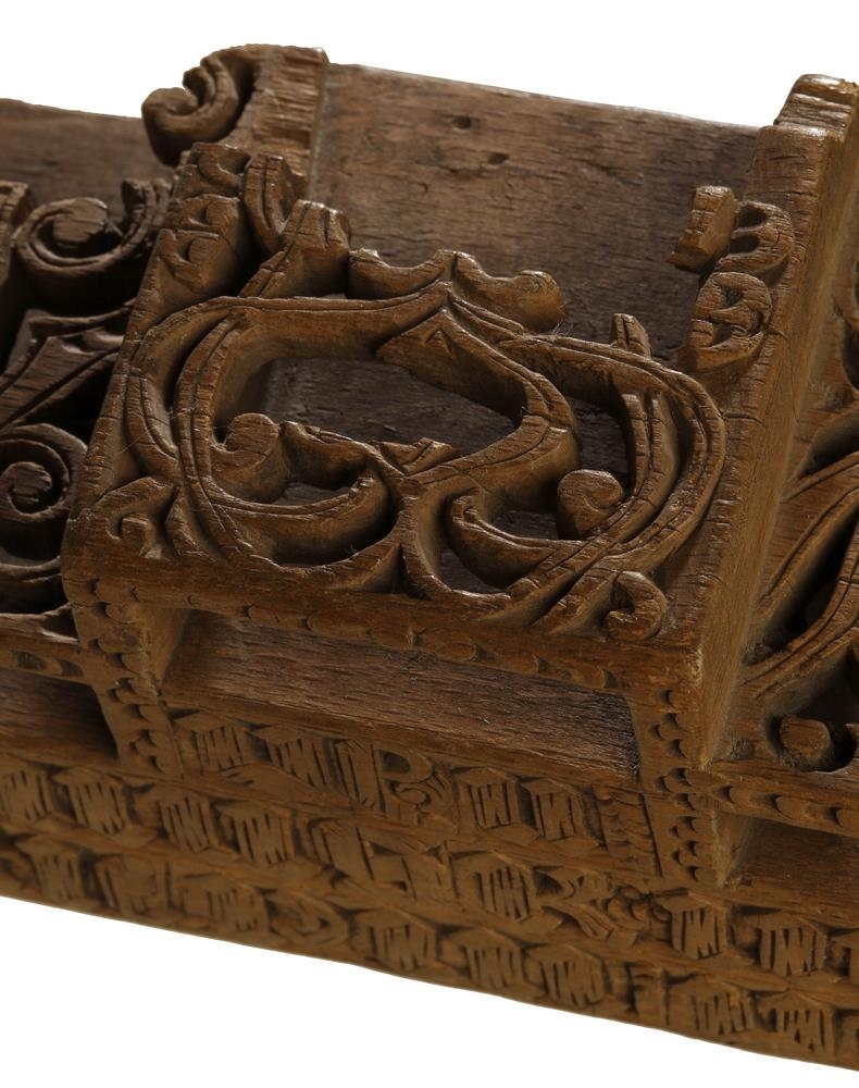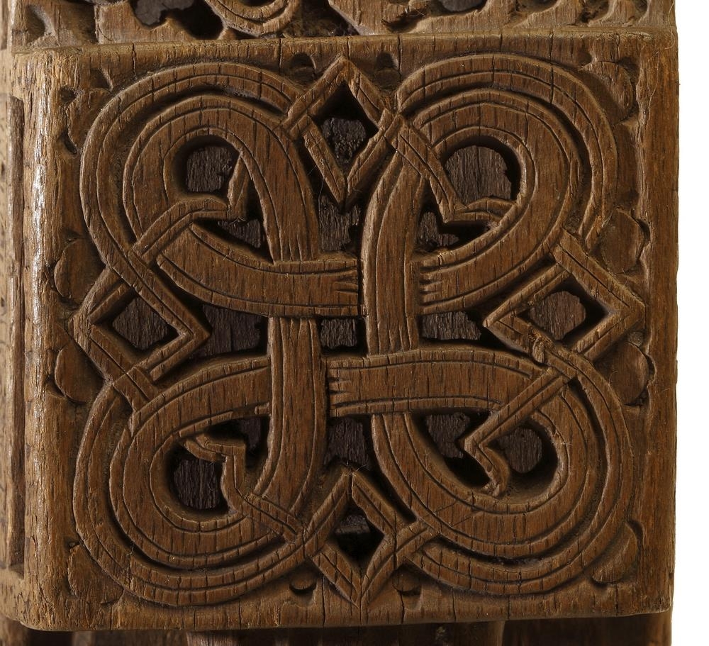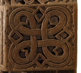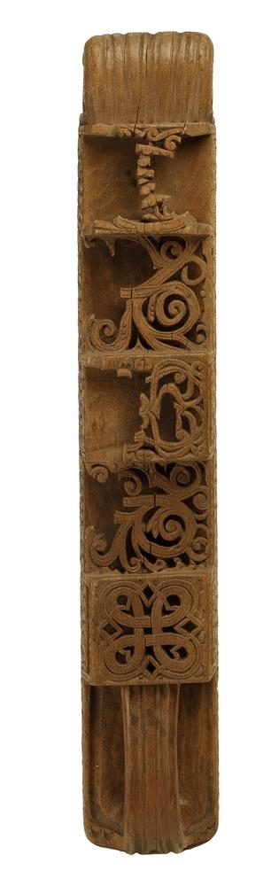 Áletranir eru bæði að ofan og í hliðum. Að ofan hafa verið skrautlega loftskornir (gagnskornir) stafir sem hafa vafalaust verið fangamark þeirrar er keflið átti. Þessir stafir eru nú svo brotnir að ógerlegt er að sjá hvaða stafir það hafa verið. Aftasti flöturinn er þó heill en á honum er skrauthnútur.