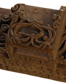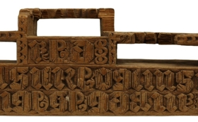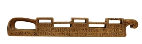 Trafakefli, yfirkeflið, úr bæki,l. 54,6 cm., br. 9,4 cm., h.7,8 cm. Handfang fram úr að framan og ofaná að aptan, en þess í milli er keflið alt loptskorið, miðkafli og ystu kaflarnir hæstir, en hinir 2 þar í milli lægri, h. 6,1 cm. Á hvorri hlið eru 2 höfðaleturslínur fyrir neðan alla þessa 5 kafla og bútar 3 af hinni 3. og efstu undir þeim 3 köflum, sem hæstir eru. Í loptskorna verkinu, sem er ofaná keflinu og nú að nokkru leyti broti virðast hafa verið upphafsstafir konu þeirrar er fyrst átti keflið, því að í línubútunum efstu er: a kielfed-med - - riett - men - eing [en önnur]. En í línunum 2 á hliðunum er þessi vísa: seimahlidasilkeoglinsistvilkhvckastmehige (siæ) hegdanfrida v/-mheiminnskinhneigstvidasutilþin virdtilbetur[v]. - Fyrir neðan handfangið á apturendanum er letrað : ANNO 1778 - DAG 13 FEB.