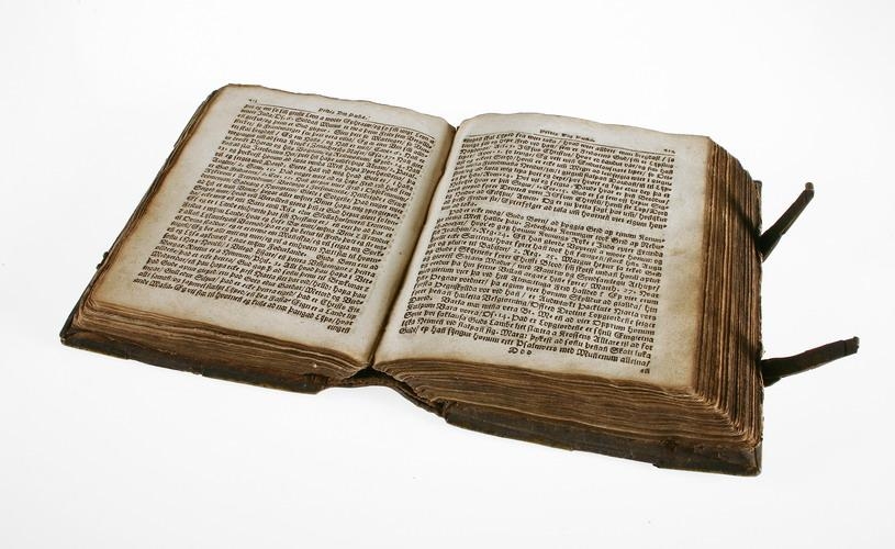 Homily Book bound in leather and brass. The book was first printed