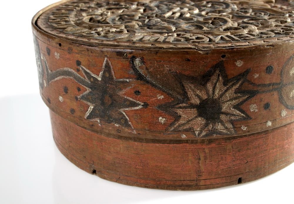 Trafaöskjur með upphleyptum skurði og málaðar ýmsum litum. Á loki eru fljúgandi englar og fugl og þar undir "Anno 1677" en á miðju loki samandregið "R.I." og umhverfis á lokinu er skorið: "eg geng út eður inn, samt ertu Jesús bróðir minn." Öskjurnar eru greinilega smíðaðar af Guðmundi Guðmundssyni smið frá Bjarnastaðahlíð í Skagafirði á 17. öld, kunnasta útskurðarmanni þess tíma og lærðum í Kaupmannahöfn, handa Ragnheiði Jónsdóttur, þriðju konu Gísla biskups Þorlákssonar á Hólum.