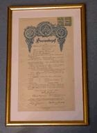 húsamiður. Bréfið er gefið út 7.nóvember 1932. Það er innrammað í gylltan