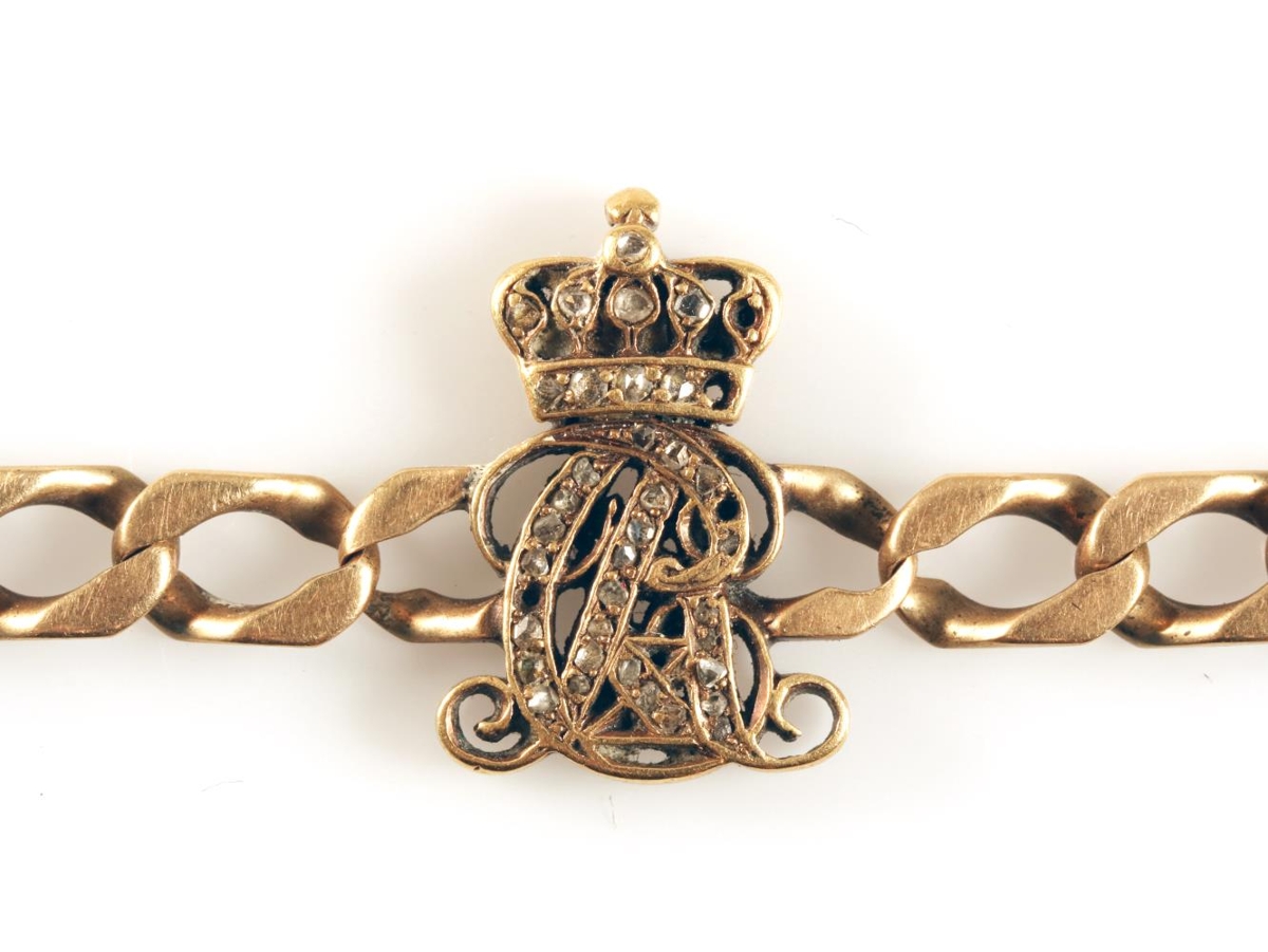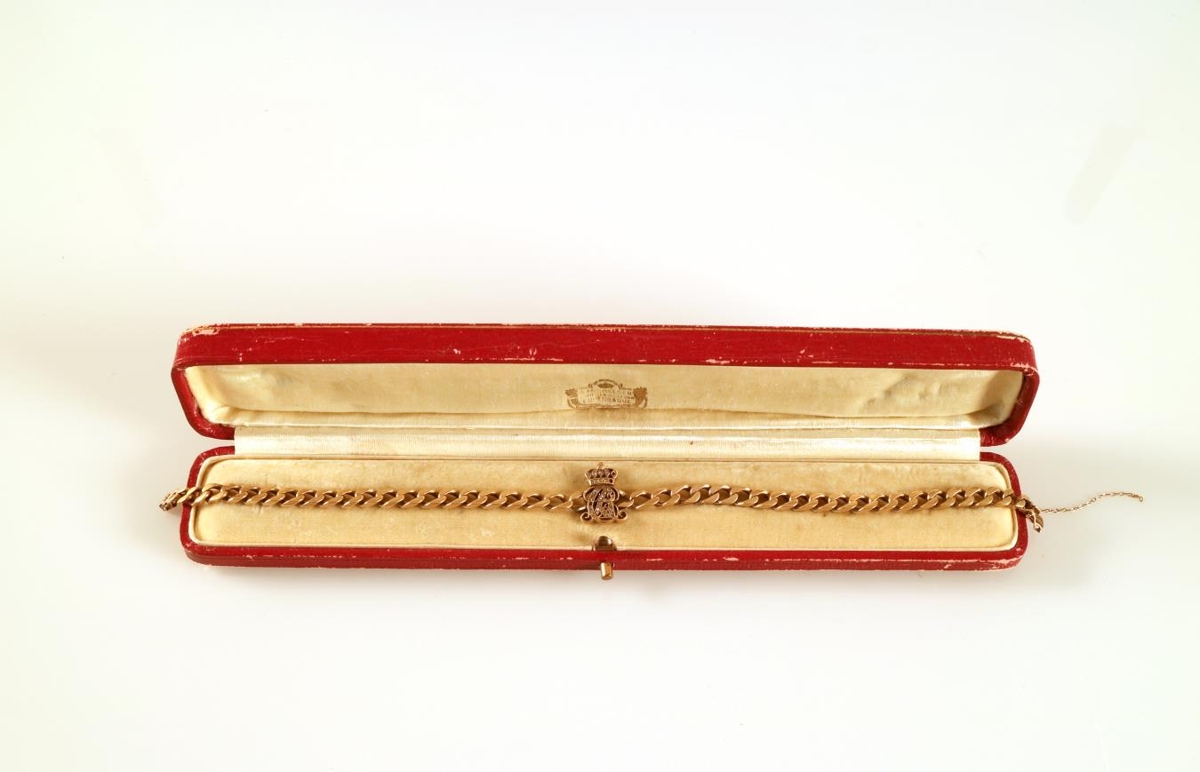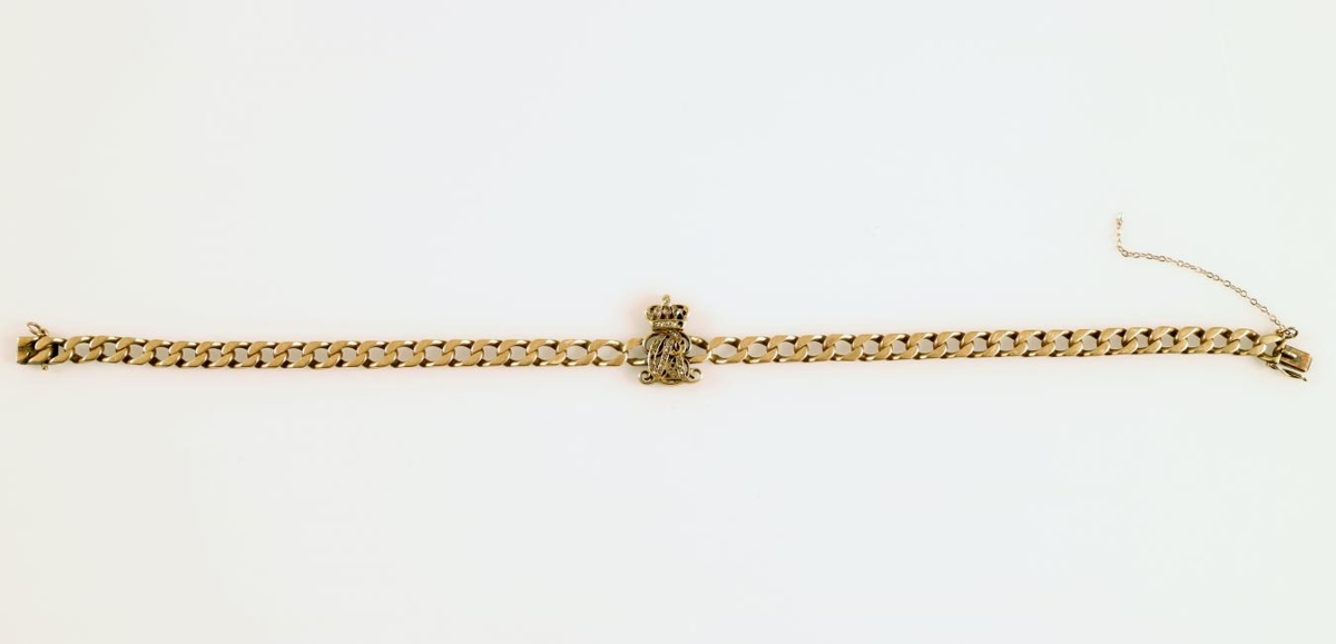 Gullarmband með nafndrætti Kristjáns konungs X, settum demöntum, gjöf frá konungshjónunum til frú Þóru Magnússon forsætisráðherrafrúar, og ljósmynd af konungshjónunum á Þingvöllum með eiginhandaráritun þeirra: gjöf konungshjónanna til Jóns Magnússonar forsætisráðherra og Þóru konu hans. Gefandi hefur áður gefið mynd af konungi í silfurramma. Sjá ennfremur 1968-336.