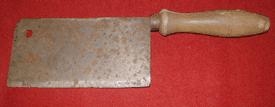tréskafti. Sjálft saxið orðið nokkuð ryðgað. Kjötsaxið er meira en hálfrar