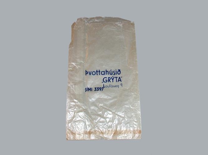 Þvottahúsið „GRÝTA“ Laufásveg 9 SÍMI 3397. Pokinn er rifinn á nokkrum