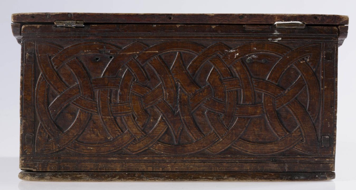 né ártal. Kistillinn er trénelgdur, lokið laust af hjörum, handraða vantar,