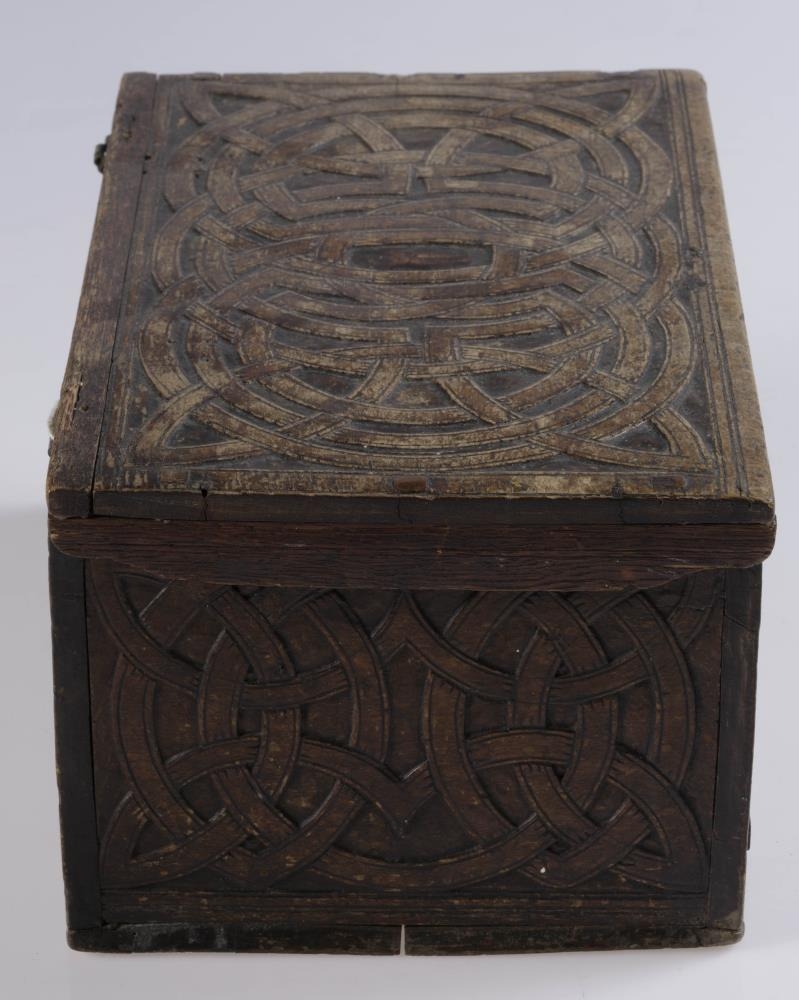 né ártal. Kistillinn er trénelgdur, lokið laust af hjörum, handraða vantar,
