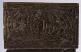 skorin með sams konar hringamunstri og geometrísku munstri. Áletrun engin