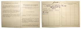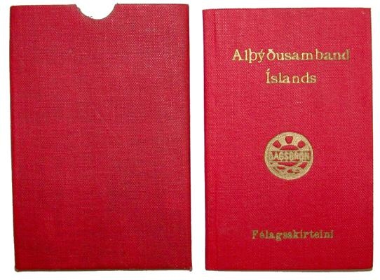 Félagsskírteini Alþýðusambands Íslands / Verkamannafélagsins Dagsbrúnar, útgefið 1947. Er eins og lítil bók, í rauðri, textílklæddri kápu með gylltum stöfum. Hún er í hulstri eða vasa úr samskonar efni.