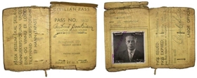 CIVILIAN PASS Guðna NO. WD/13. Útgefinn 16, september 1943 af bandaríska hernum hér á landi. Þetta sýnir að Guðni hefur um tíma unnið sem verkamaður fyrir bandaríska herinn (verið LABOR OFFICER) hér á stríðsárunum. Í passanum er mynd af Guðna. Á bakhliðina er prentað: PASSA ÞESSUM SKAL SKILA Á VINNUSKRIFSTOFUNA UNDIR EINS OG VINNU ER LOKIÐ. TILKYNNIÐ SKRIFSTOFUNNI EF HANN TAPAST. Passinn er prentaður á gulan pappír. Orðinn snjáður.