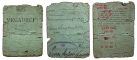 VEGABRÉF Guðna, útgefið af Lögreglustjóranum í Reykjavík 8.2.1942. Prentað og skrifað á bláan pappír. Það er orðið mjög snjáð, er sundurrifið og ljósmynd sem hefur verið heftuð á bakhliðina er nú glötuð.