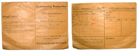 BiðtímaskírteiniSJÚKRASAMLAGS REYKJAVÍKUR, útgefið 1947. Prentað á gulan pappír.