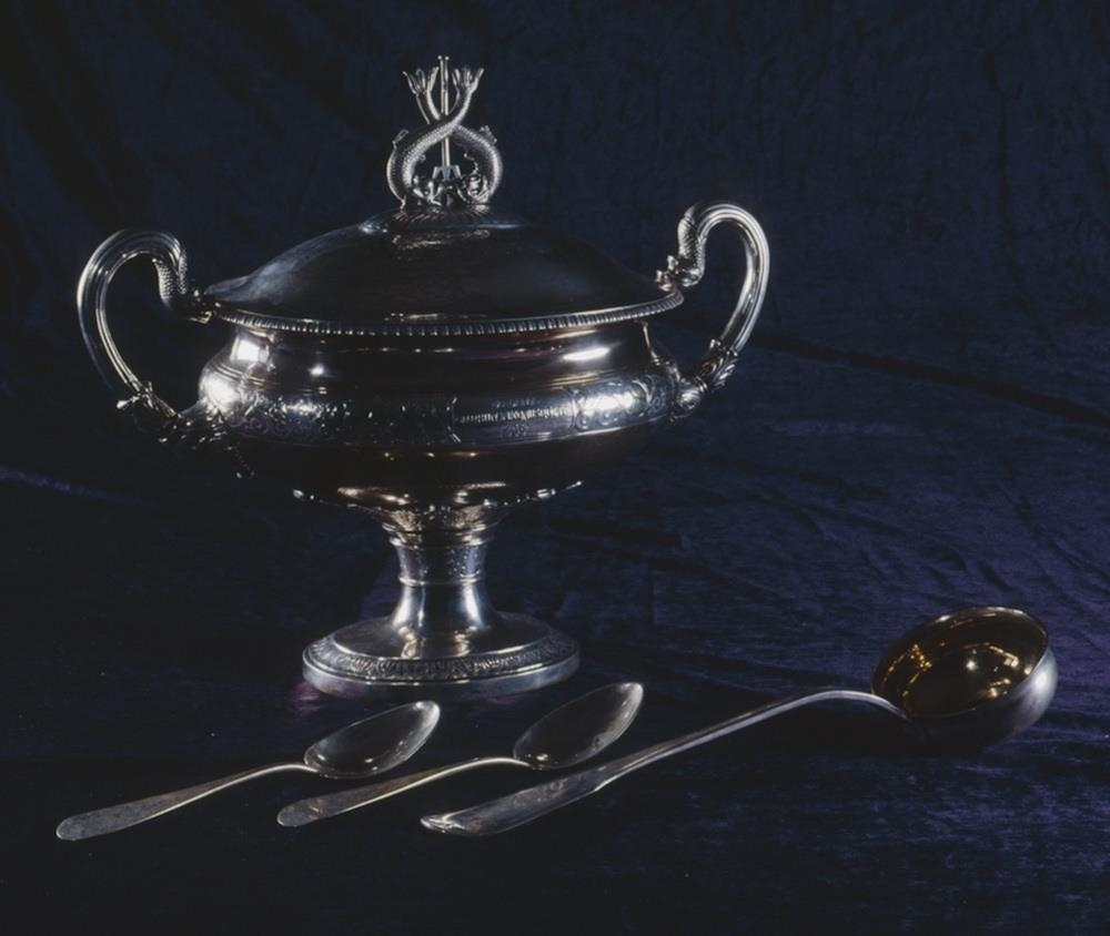 Potage- og Callotteskeið og kostaði allt það með mahognykassa, er var 9 rd., 314 rd. með smíðalaunum, og var
