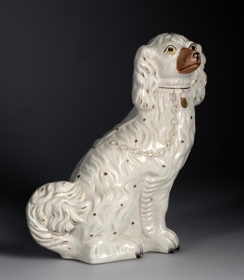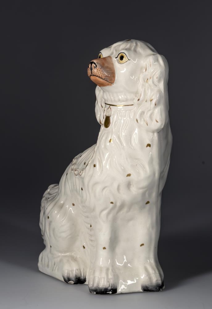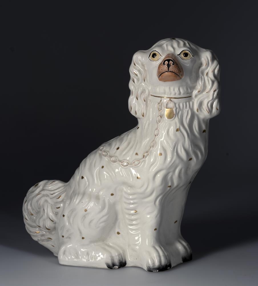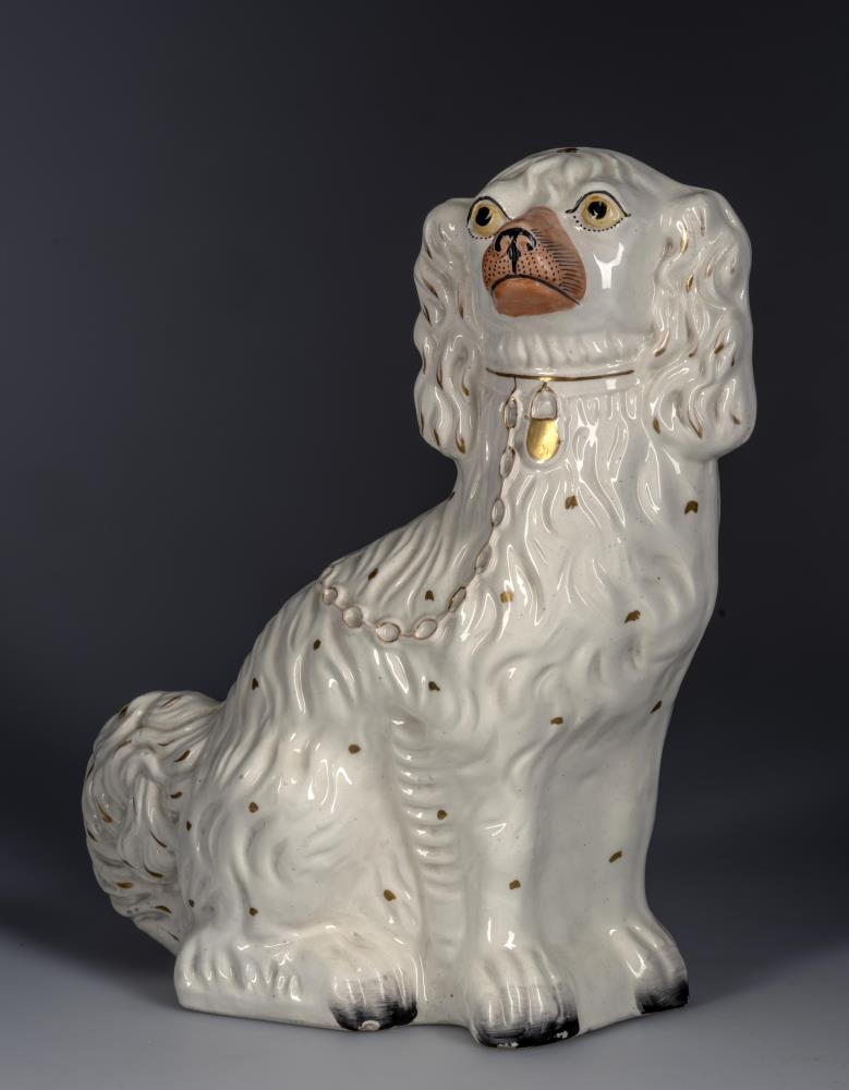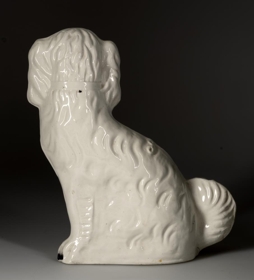 Hundslíkneski úr postulíni eða leir með hvítum glerungi, lítill loðhundur, með stórum, hangandi eyrum, en hringaðri rófu, bandi um hálsinn og lás á, og festi við: er lásinn, festin og nokkrir smáblettir með gyllingu augun máluð gul, nema sjáaldur, sem er svart, hvarmar svartir: trýni rauðbleikt með svörtum dráttum til að sýna kjaptinn, granahárin o. fl. Hundurinn situr hnarreistur, snýr hausnum til hægri og starir út í loftið. Er hæðin 32,3 cm., en br. haussins um eyrun 13 cm. Sennilega þýzkur að uppruna og frá síðasta tug 19. aldar. - Við þennan hund er átt í Alþingisrímum (1899 - 1901), Rvík., 1902 (eptir Guðm. Guðmundsson skáld), bls. 15. Er þar ort út af (draum-) sýn, er Valtýr kvaðst hafa sjeð: virtist honum sem hann sæi Benedikt Sveinsson, þingm. Norður - Þingeyinga: en er hann vaknaði fyllilega við, sá hann, að þar var þessi hvíta hundsmynd. Er hann kom á fætur þennan sama morgunn, frjetti hann þegar andlát Benedikts (2. Ág. 1899). - Valtýr hafði ánafnað gjöfina.