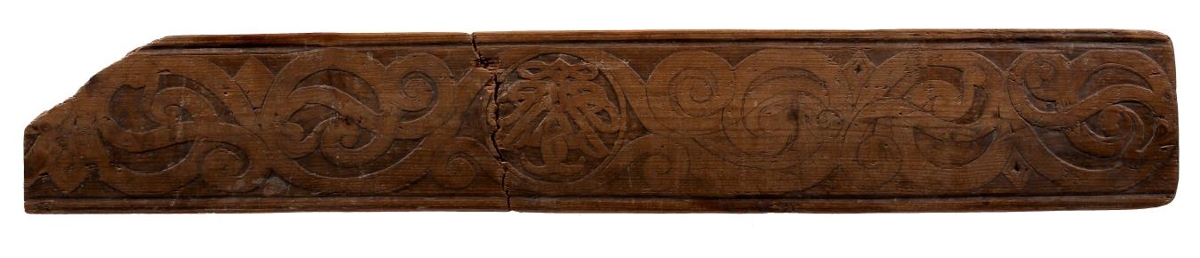Rúmfjölin er ekki að fullu útskorin. Hún er með fangamarki (spegil) í miðju. Hún er brotin í tvennt.