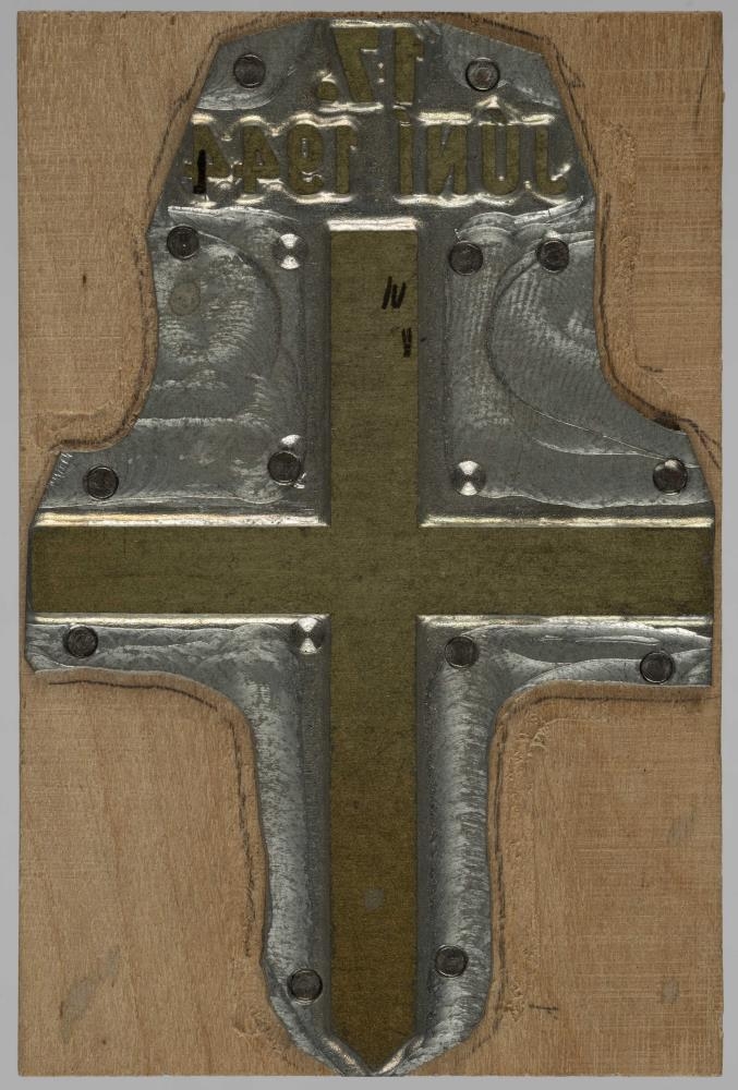 13 myndamót frá lýðveldishátíðinni 1944. Þau eru öll á trékubbum. Þrír með andlitsmyndum, ein af Einari Olgeirssyni og hinar tvær eru sennilega af þeim Jóhanni Hafstein og Ásgeiri Ásgeirssyni. Þrjú myndamót með gamla skjaldarmerkinu með kórónu og eitt myndamót sem er málmplata með nýja skjaldarmerkinu, því sem enn er notað. Tvö myndamót með fána. Tvö með krossi og stöfunum 17. júní 1944 yfir og tvö með skildi og rísandi sól yfir. Málmplata án tákna fylgir með. Sjá einnig nr 40 og 42.