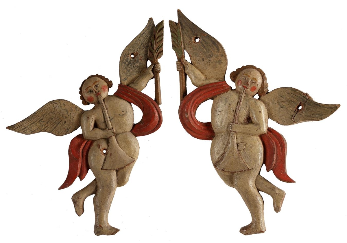 Tveir dómsdagsenglar olíumálaðir, líklega úr kirkju. Þeir eru naktir og hafa sveiflað laungu rauðu klæði um annan handlegg sér, annar um hægri, hinn um vinstri handlegg; þeir halda á básúnu. Í skráningu við grip nr. 634 segir: Allir þessir hlutir [þá er átt við gripi nr. 632, 633 og 634] eru skornir í tré af Gunnlaugi Briem á Grund, kammerráði og sýslumanni í Eyjafjarðar sýslu.