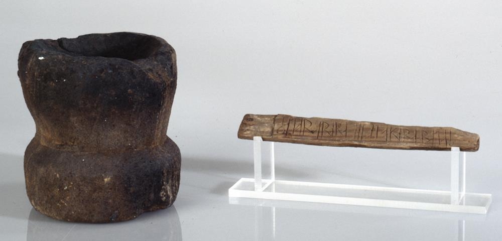 Rúnakefli, fundið í jörðu á bæjarstæðinu á Bergþórshvoli, talið frá 16. - 18. öld. Á því er annars vegar rúnastafrófið: fuþark... en hins vegar alkunn töfraþula: sator arepo tenet opera rotas, stöfunum raðað saman til að orðin megi lesa á ýmsa vegu en hafa ekki beina merkingu. Þulan mun hafa þótt vörn við gulu og hefur keflið líklegast verið borið sem verndargripur.